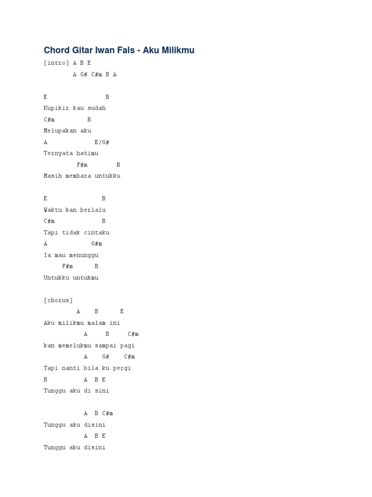 Lirik Dan Chord Lagu Iwan Fals Aku Milikmu Malam Ini