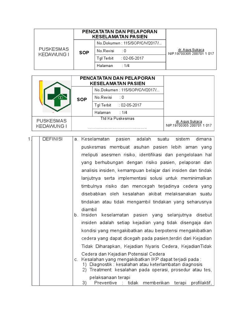PDF) Sop Keselamatan Pasien | Rina Elfiani - Academia.edu