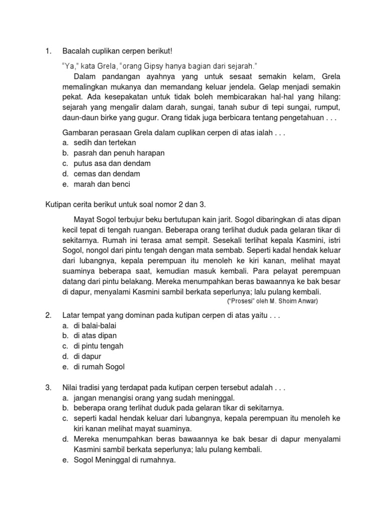 SOAL BERDASARKAN JABARAN KISI-KISI UJIAN NASIONAL C. 3 D. 4 Bacalah kutipan cerpen berikut kemudian - [PDF Document]