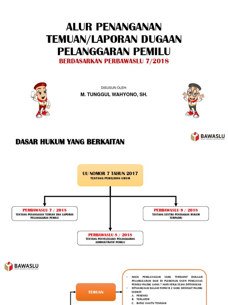Alur Penanganan Temuan/Laporan Dugaan Pelanggaran Pemilu: Berdasarkan Perbawaslu 7/2018