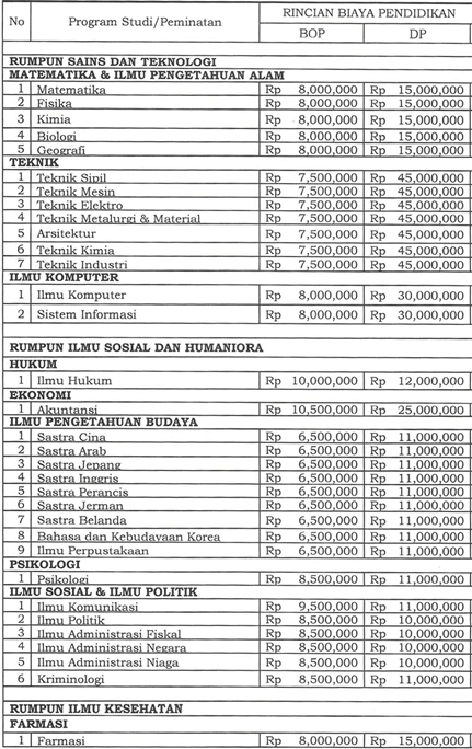 Biaya Kuliah UI - Mahasiswa - CARApedia
