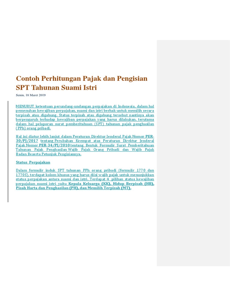 Contoh Perhitungan Pajak dan Pengisian SPT Tahunan Suami Istri