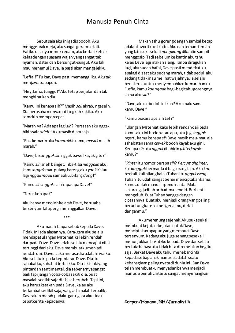 Cerpen, manusia penuh cinta ( )