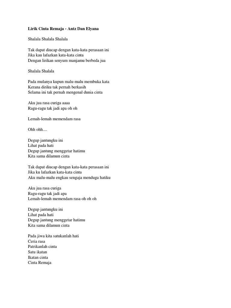 Lirik Cinta Remaja