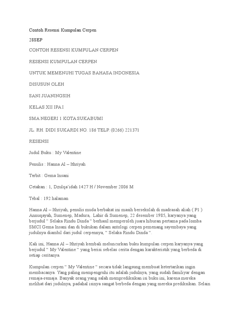 DOC) Contoh Resensi Cerpen | Dimitri Inzaghi - Academia.edu