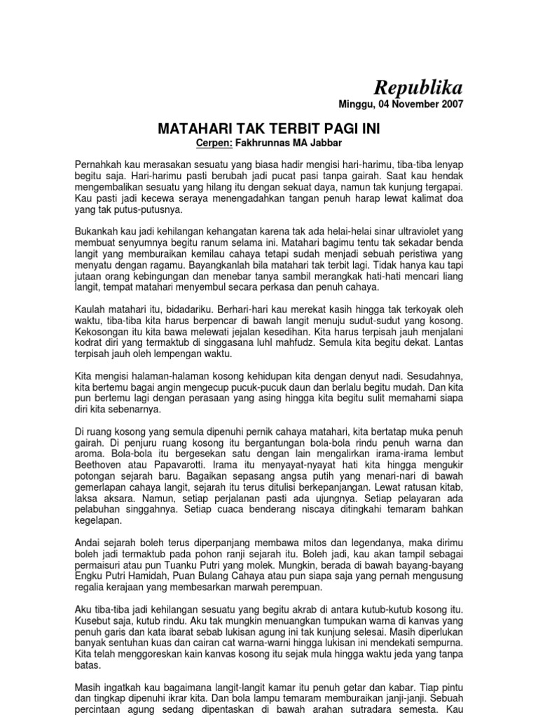 Kumpulan Cerita Lucu: Unsur Intrinsik Cerpen Matahari Tak Terbit …