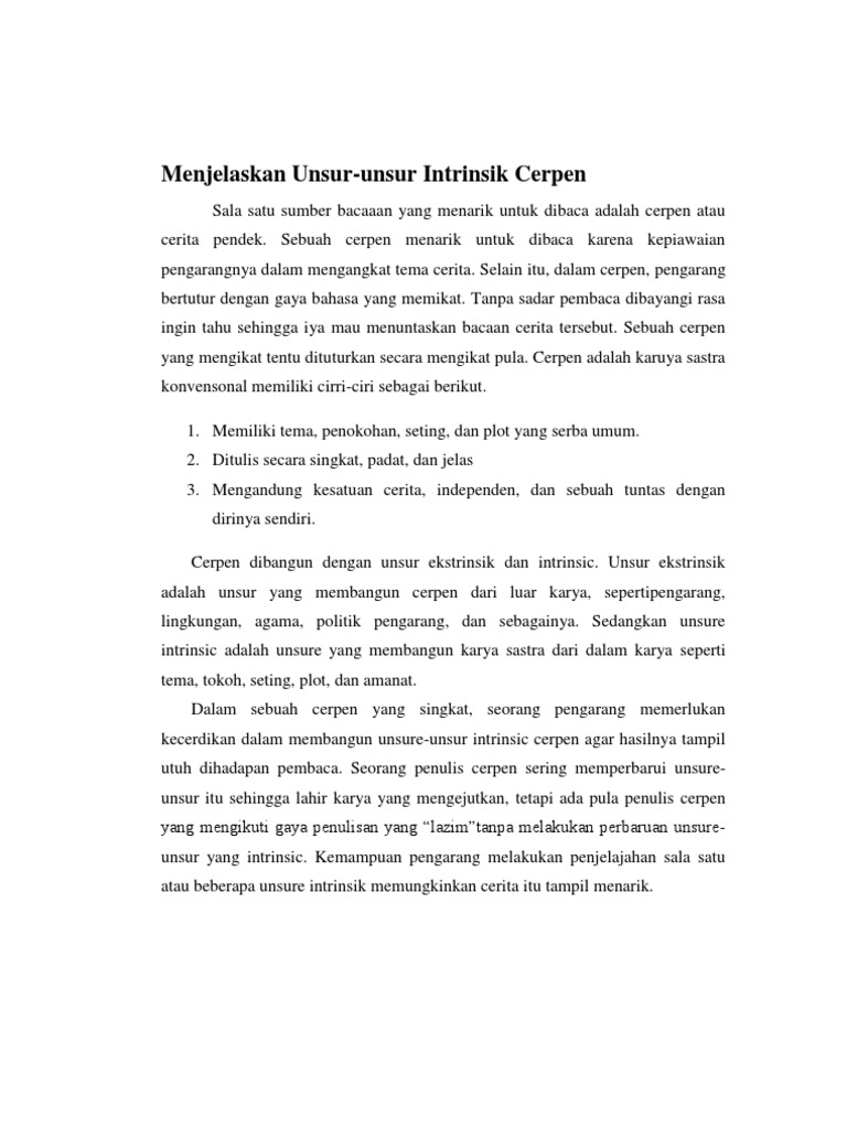 DOC) 4 Contoh Cerpen Beserta Unsur Intrinsik dan Ekstrinsiknya …