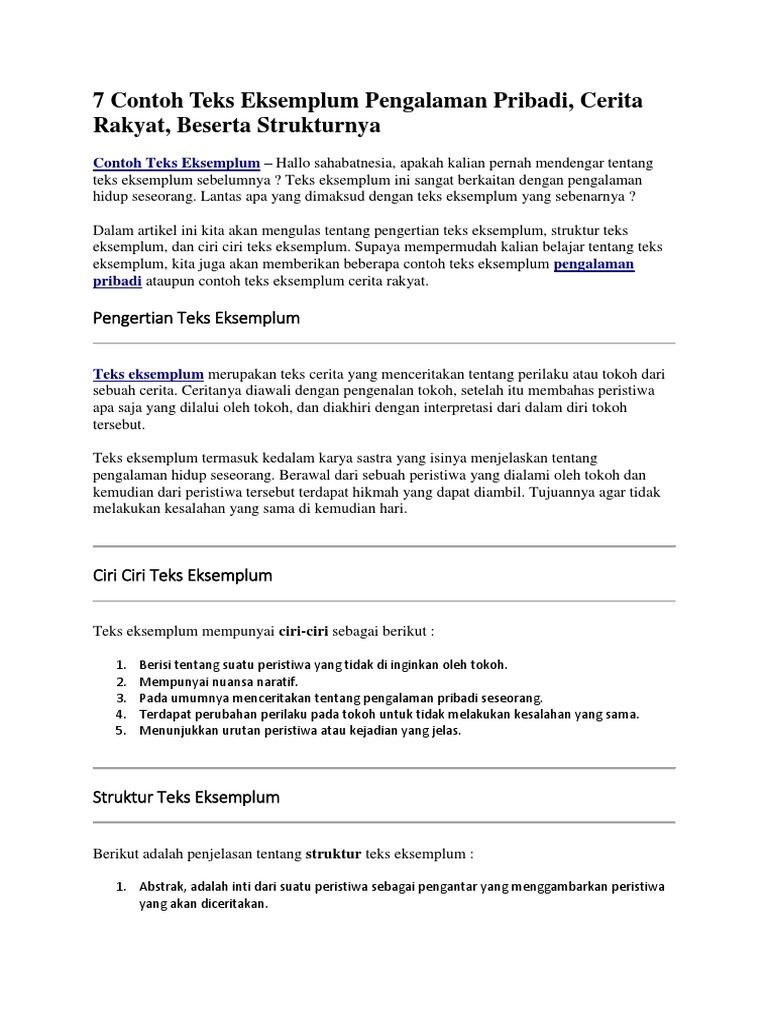7+ Contoh Teks Eksemplum Lengkap Beserta Strukturnya : Pengertian …