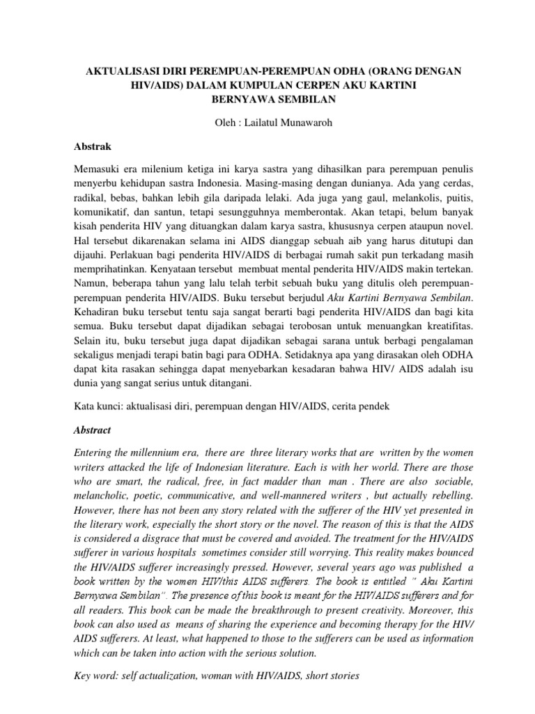 PDF) MENYIBAK KARYA SASTRA PEREMPUAN PENDERITA HIV/ AIDS