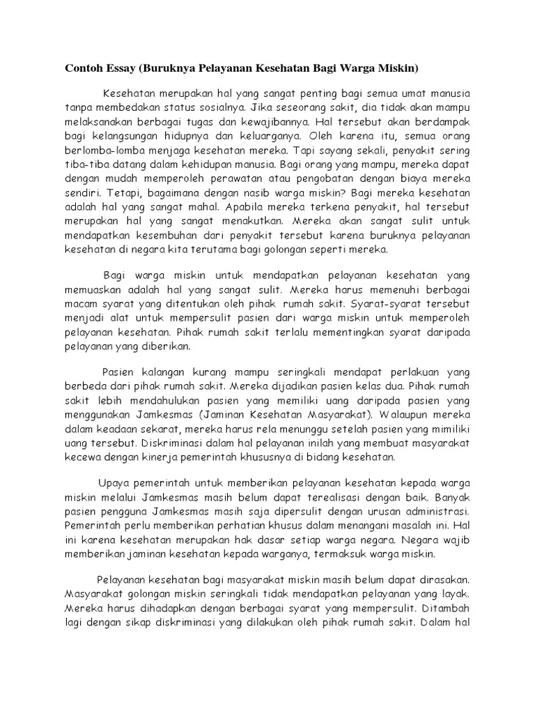 Contoh Essay (Buruknya Pelayanan Kesehatan Bagi Warga Miskin)