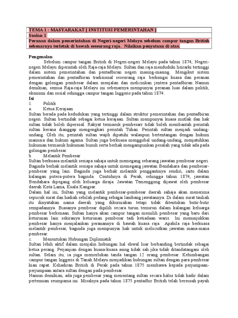Contoh Soalan Esei Sejarah Tingkatan 5 Bab 3 - Harbolnas e