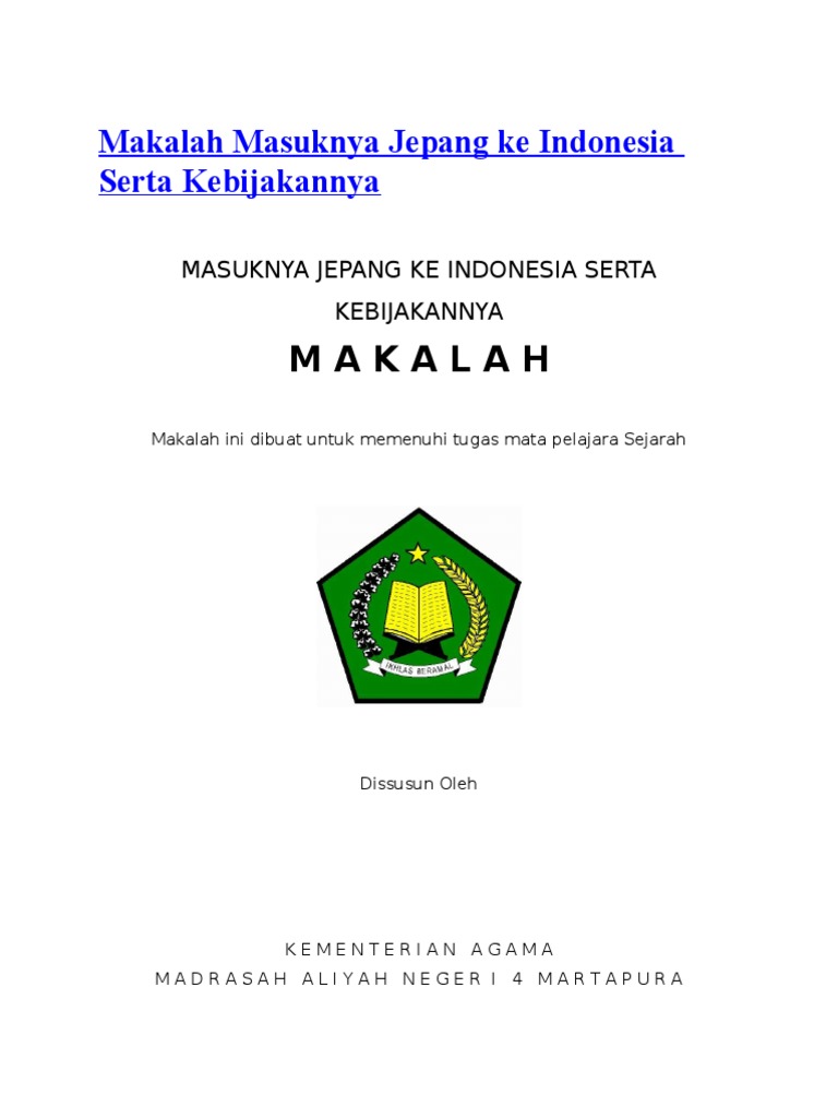 Makalah Masuknya Jepang Ke Indonesia Serta Kebijakannya