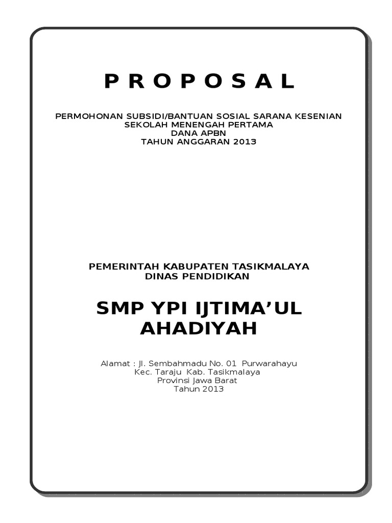 DOC) PROPOSAL PERMOHONAN BANTUAN PENGADAAN ALAT KESENIAN DAN MEDIA PEMBELAJARAN KURIKULUM 2013 Diajukan Oleh : Nama Sekolah : SDN Karangtengah 4 NPSN | horildan nutafital - Academia.edu