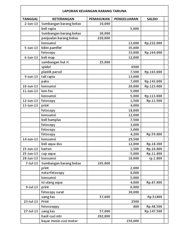 Contoh Laporan Keuangan Kegiatan Perpisahan Sekolah - Kumpulan Contoh Laporan