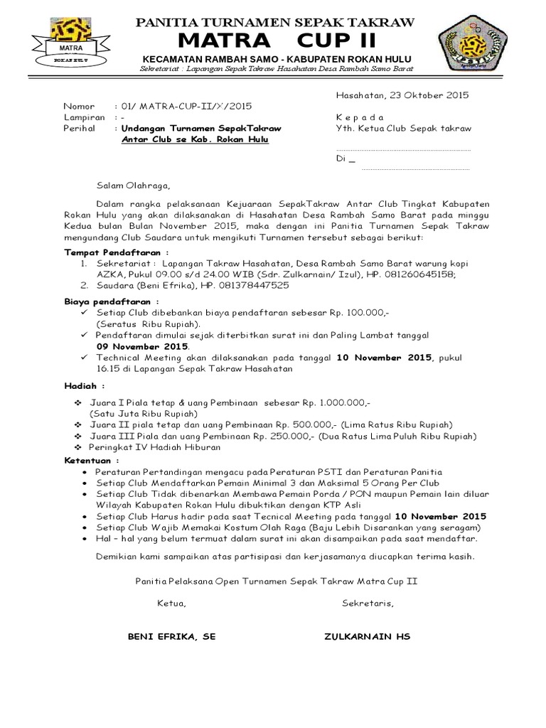 Contoh Surat Undangan Turnamen Sepak Bola - Kumpulan Surat Penting