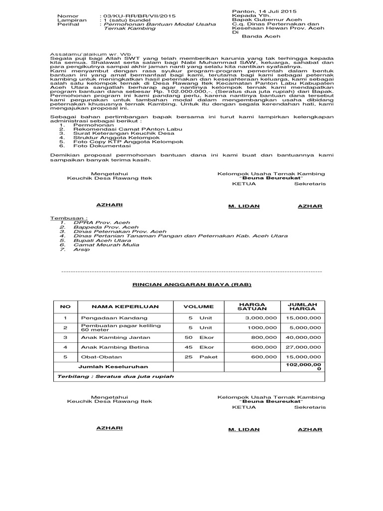 DOC) PERMOHONAN TERNAK KAMBING | fahmi rizal - Academia.edu