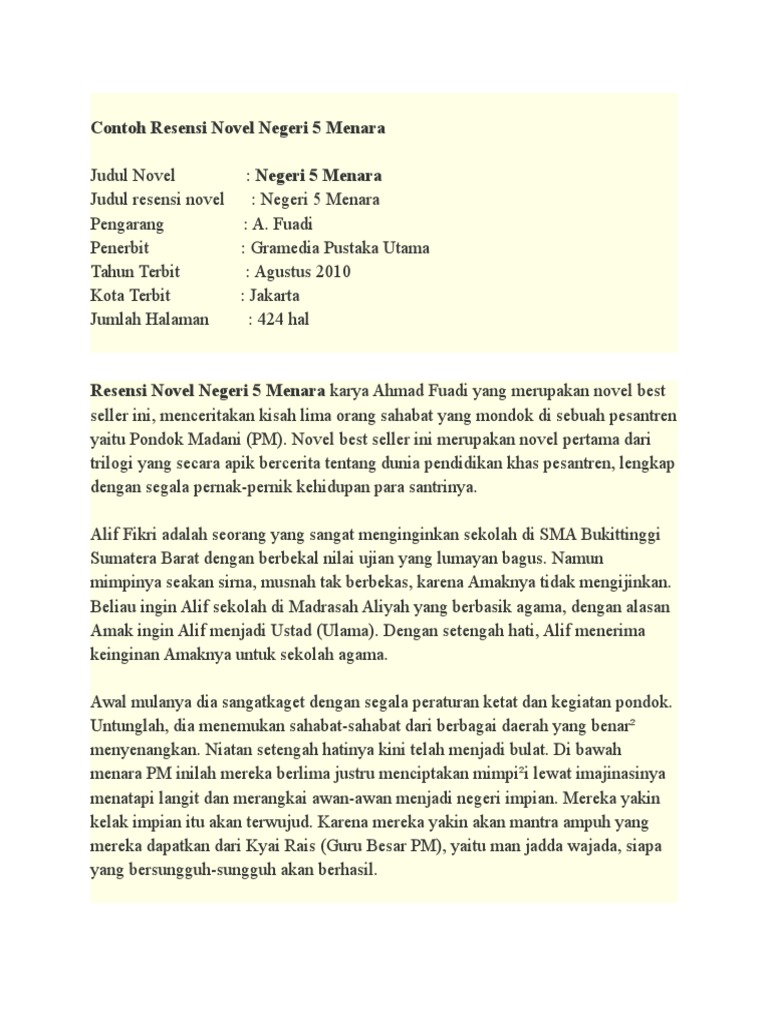 Contoh Resensi Novel ” Negeri 5 Menara” | elisarianisani