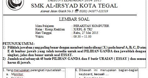 Soal Essay Dan Jawaban Pemrograman Dasar Kelas X - contohsoal.net