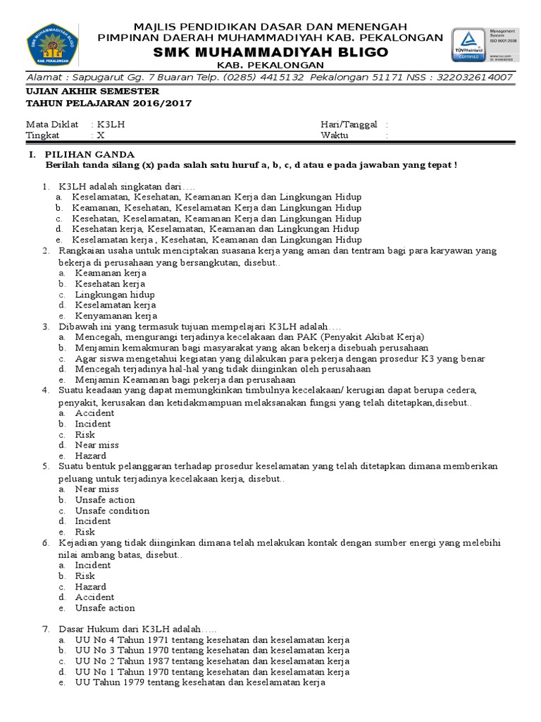 Soal Dan Jawaban K3lh Kelas 10 - Peranti Guru