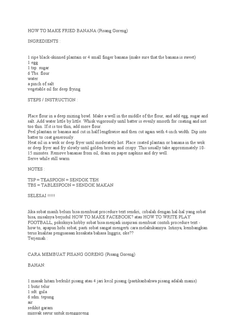 Cara Membuat Pisang Goreng Dalam Bahasa Inggris Indonesia Prosedur