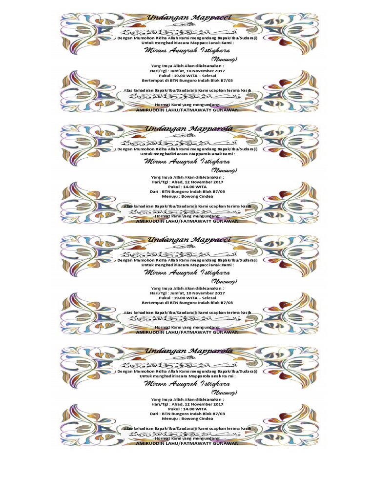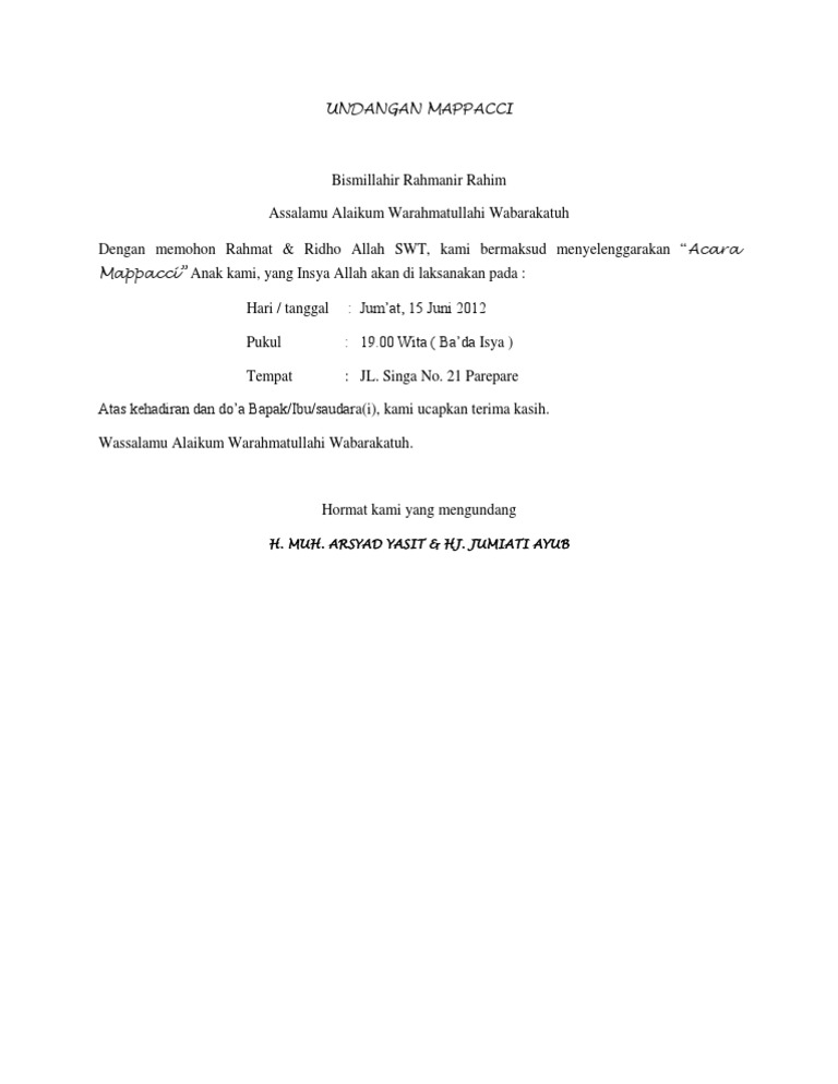 Contoh Undangan Mappacci