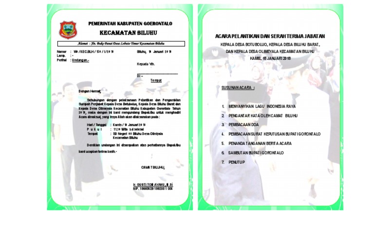 Contoh Undangan Pelantikan Perangkat Desa