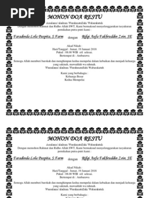 contoh undangan untuk kotak nasi pernikahan mohon doa restu - Penelusuran Google | Doa, Undangan, Pernikahan