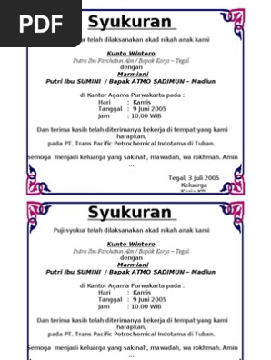 Contoh Surat Undangan Syukuran Pernikahan | Templat undangan, Contoh undangan pernikahan, Undangan