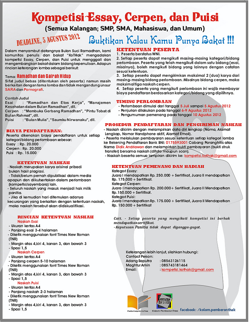 Lomba Menulis Esai, Puisi dan Cerpen