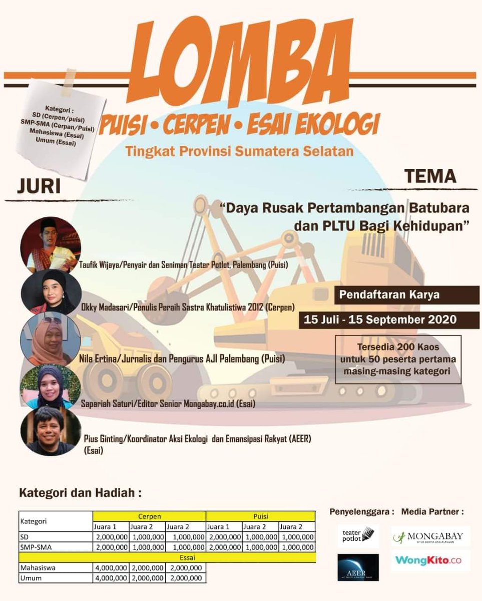 Okky Madasari on Twitter: " Khusus untuk Sumatera Selatan Lomba menulis puisi, cerpen, esai untuk SD, SMP/SMA, umum… "