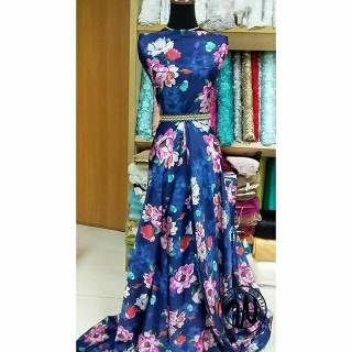 Dress Motif Bunga Besar Bahan Satin Import DA589
