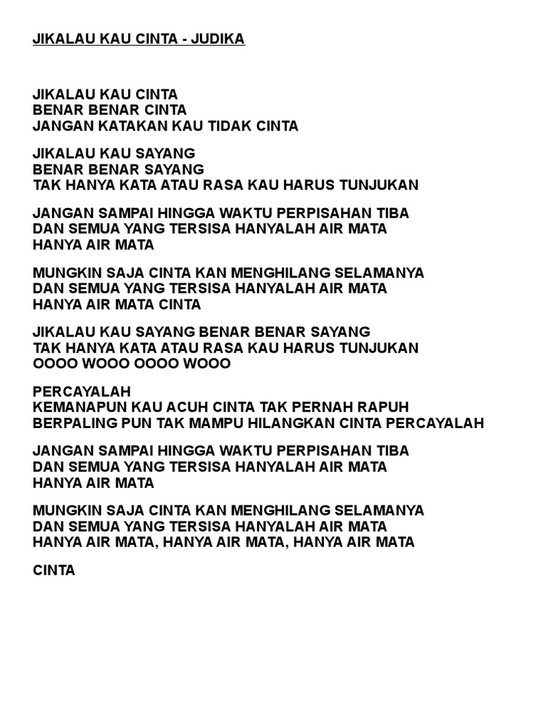 Kumpulan lirik lagu - JUDIKA-Jikalau kau Cinta [Lirik Lagu] | Facebook