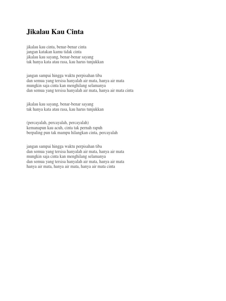 Chord Jikalau Kau Cinta jikalau kau cinta benarbenar cinta jangan katakan kamu tidak cinta jangan sampai hingga waktu perpisahan tiba dan s… | The rock, Lagu, Lirik