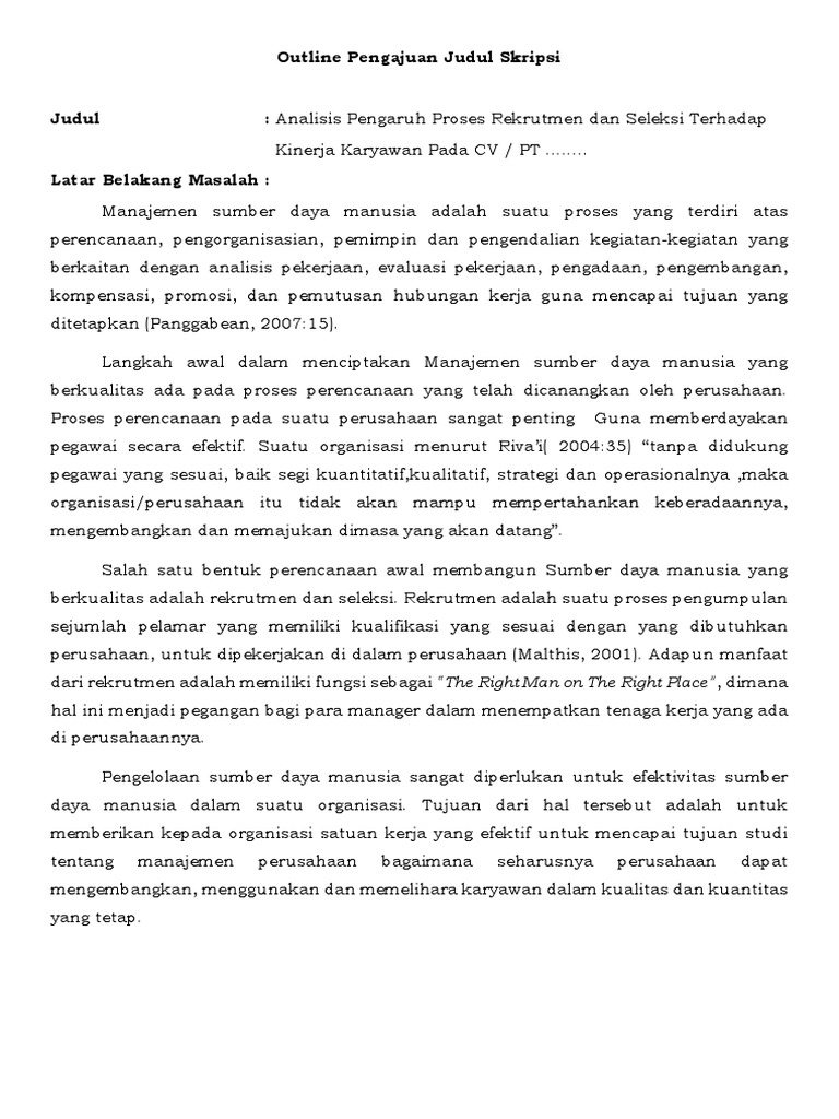 Outline Proposal Skripsi Manajemen Sdm - Ide Judul Skripsi Universitas