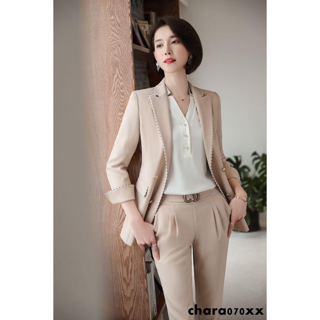 Setelan Blazer+celana Panjang Wanita Bahan Kain Untuk Kerja …