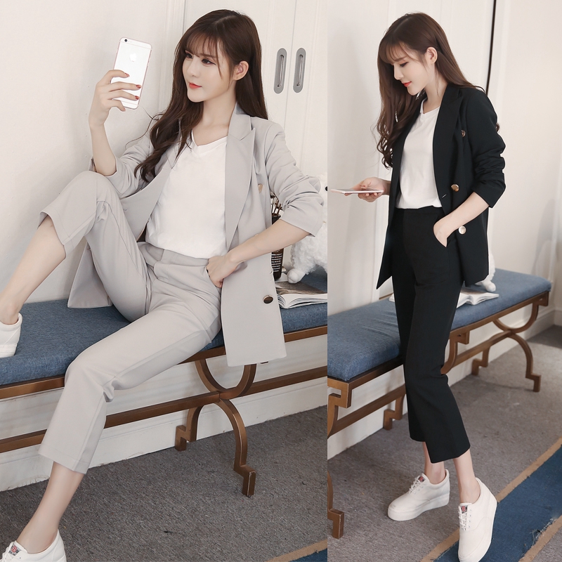 Kain Berkualitas Tinggi Fashion Grey Blazer Wanita Setelan Bisnis …