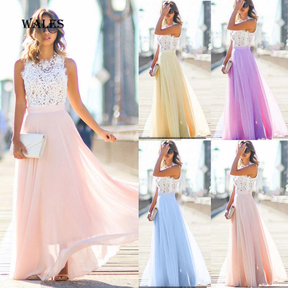 Gaun Maxi Wanita dengan Bahan Sifon Hiasan Renda dan Bunga untuk …