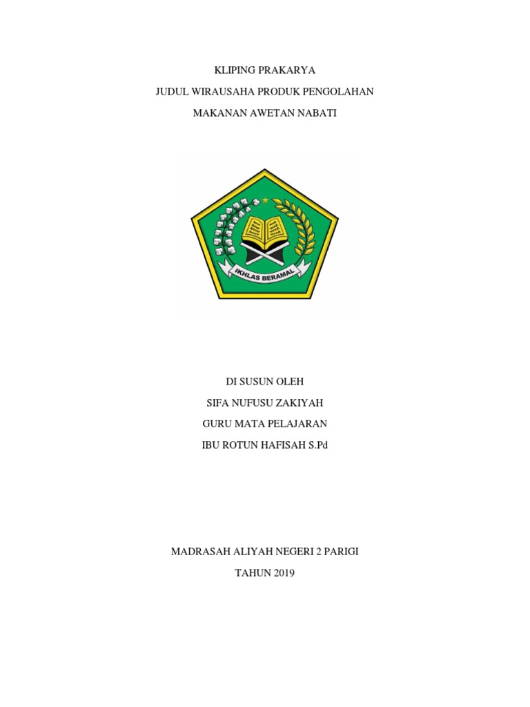 Kliping Prakarya Judul Wirausaha Produk Pengolahan Makanan Awetan Nabati