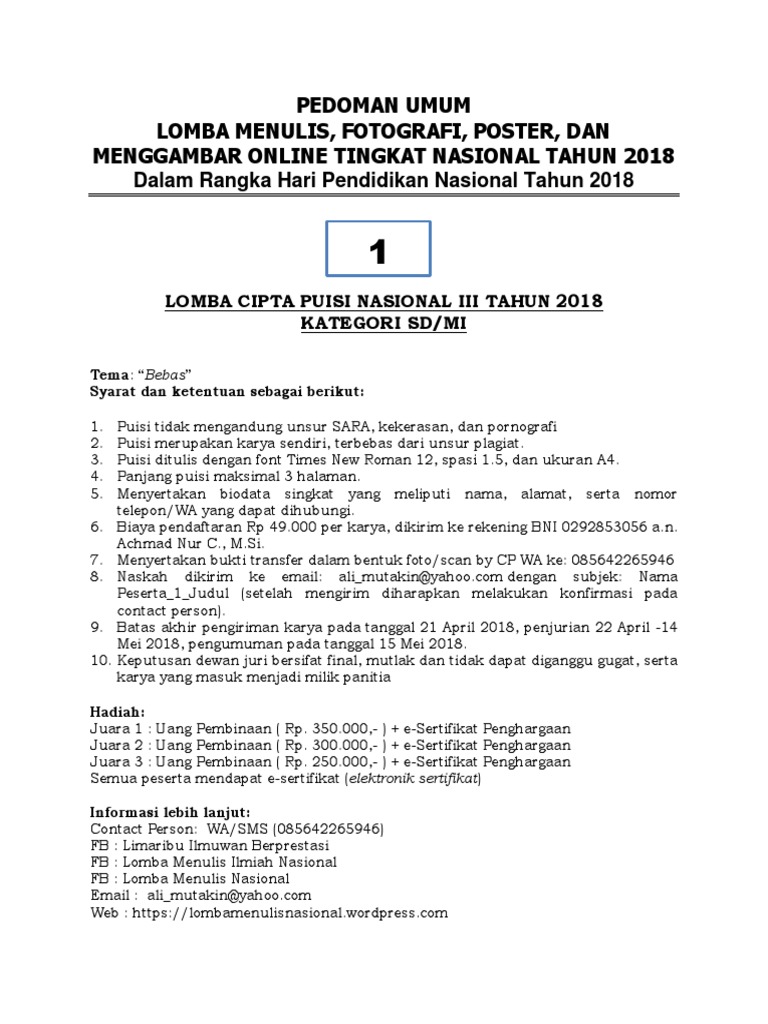 Pedoman Umum Lomba Menulis, Fotografi, Poster, Dan Menggambar …