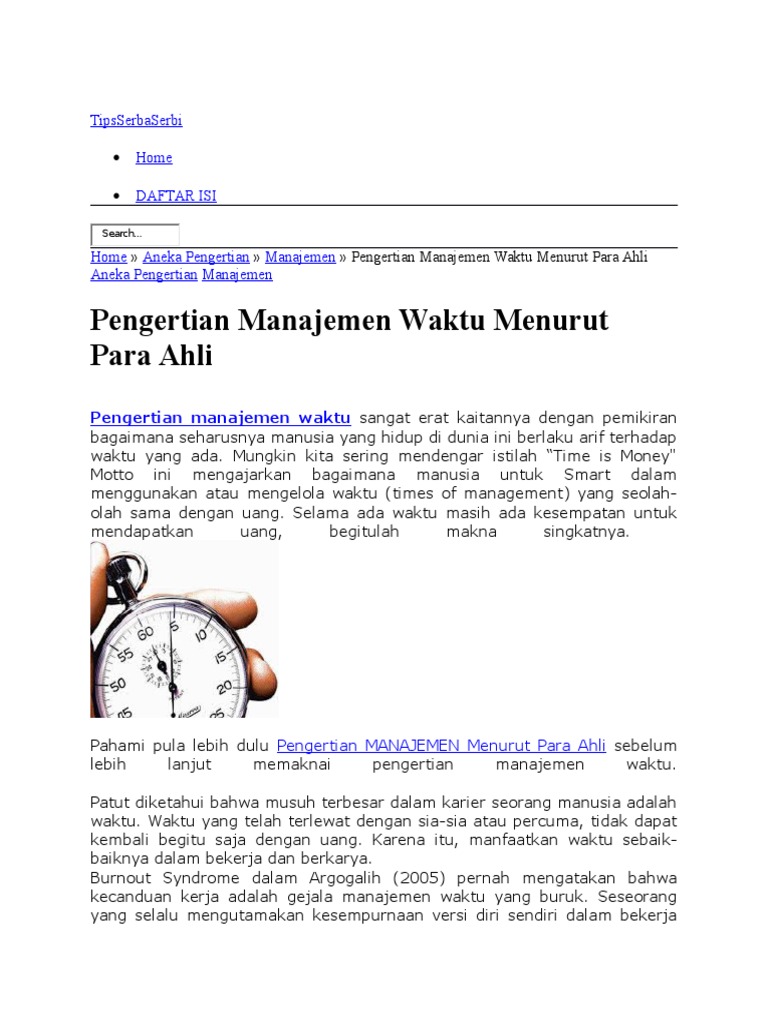 Pengertian Manajemen Waktu Menurut Para Ahli | TipsSerbaSerbi