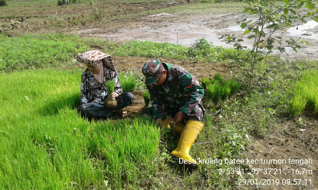 Babinsa Koramil Trumon Bantu Petani Cabut Bibit Padi