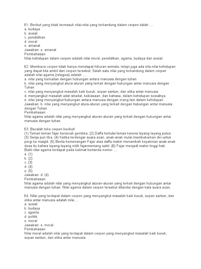 Contoh Soal Nilai-Nilai Budaya dan Agama dalam Cerpen