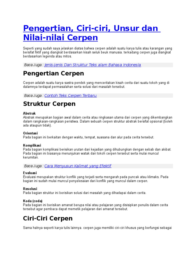Teks Cerpen : Pengertian, Jenis, Ciri-Ciri, Struktur dan Contoh » Synaoo.com