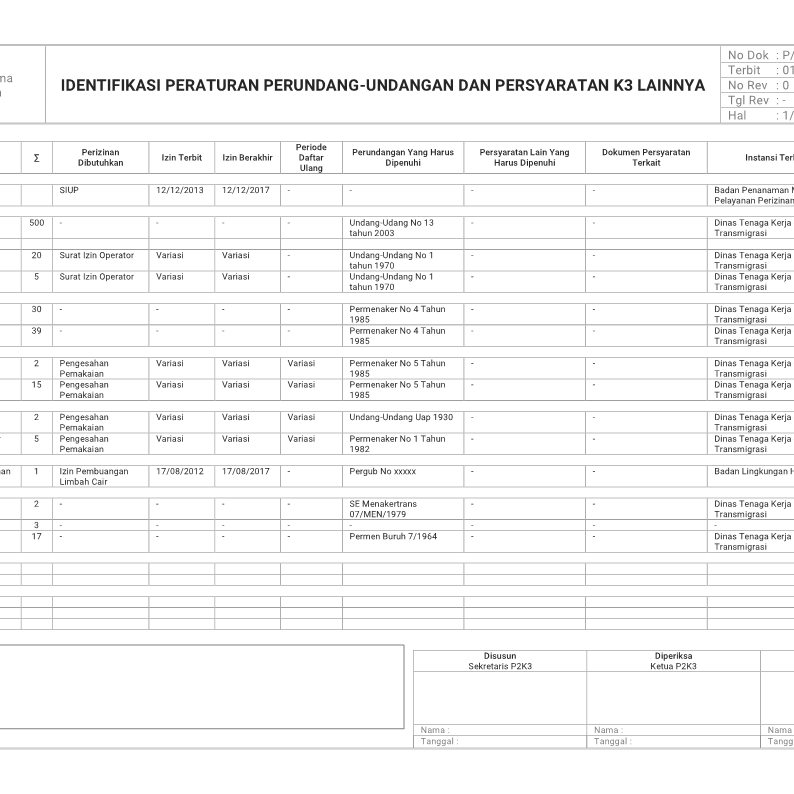Prosedur Identifikasi Peraturan Perundang-undangan dan Persyaratan K3 Lainnya PDF Online Download | Manajemen K3 Umum | Kesehatan, Undangan