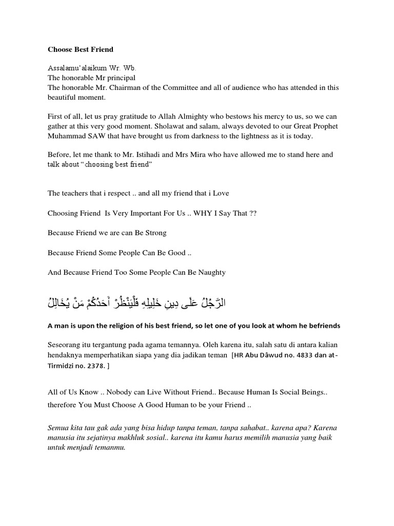 Contoh Pidato singkat Bahasa inggris " Choose a Friend" | Islamic …