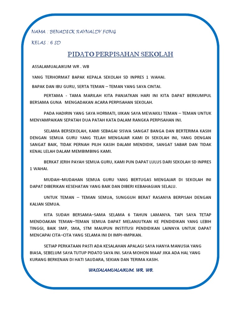 Pidato Perpisahan Sd Bikin Baper – cute766