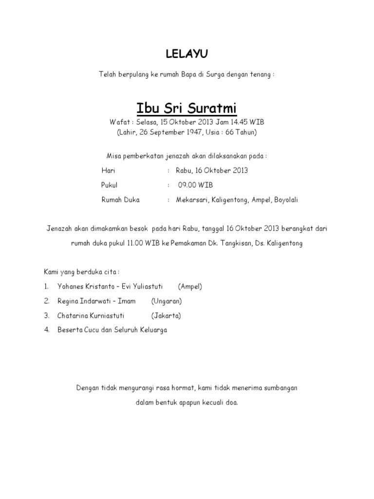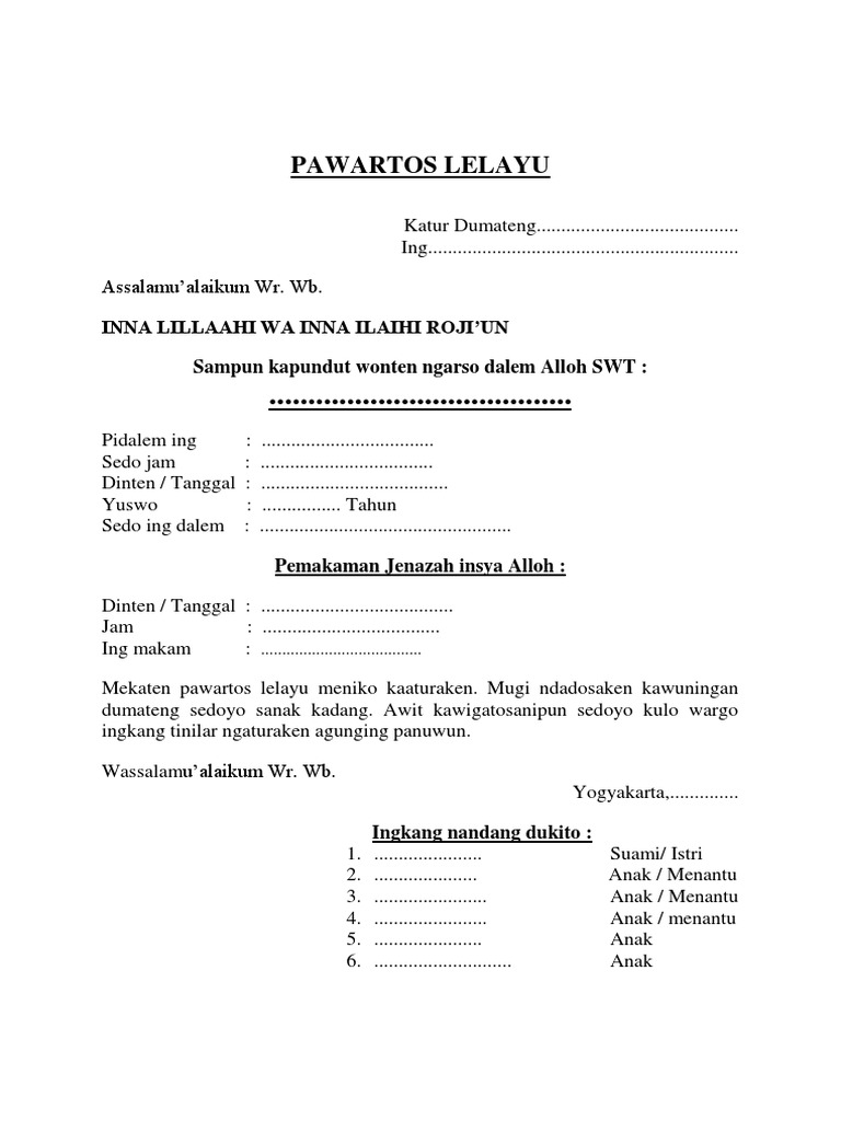 Contoh Undangan Lelayu Bahasa Jawa - Guru Paud