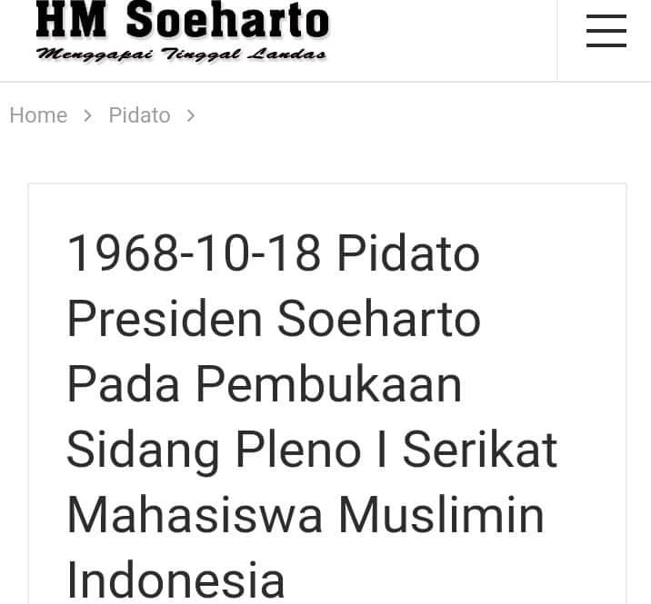 Pesan Soeharto Kepada SEMMI – SYARIKAT ISLAM
