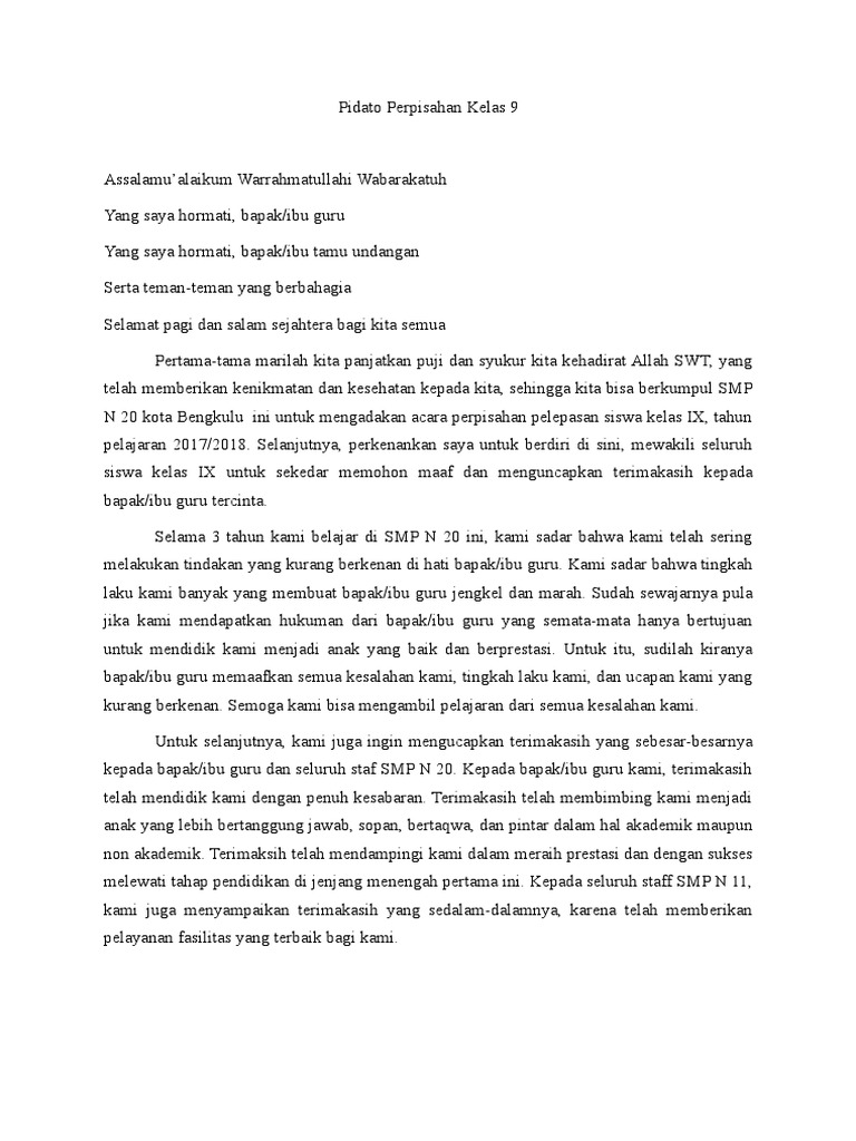 DOC) Contoh Pidato Perpisahan KELAS 9 | JayKummarhe Zazg - Academia.edu