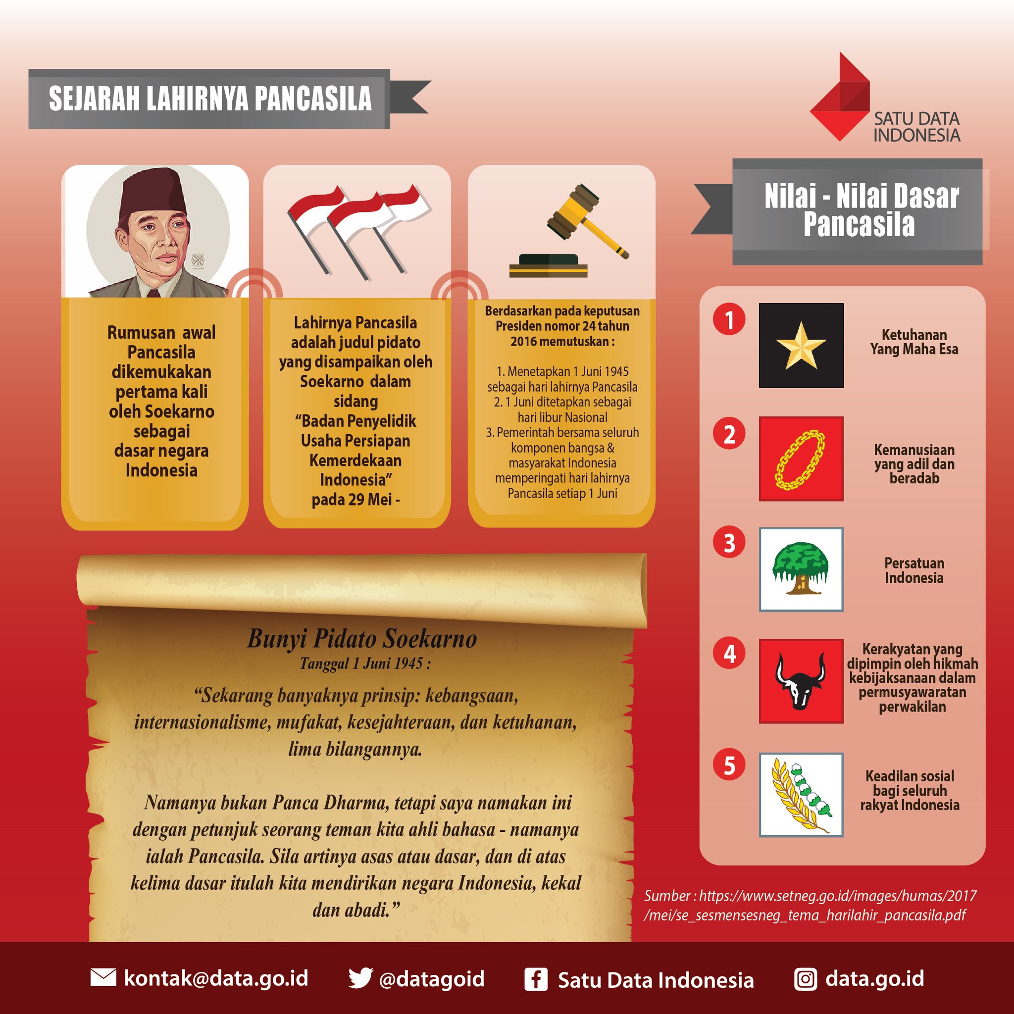 Satu Data Indonesia ar Twitter: “Lahirnya Pancasila diawali dgn Pidato Soekarno dlm sidang “Dokuritsu Junbi Cosakai” pada tgl 1 Juni 1945 #FYI #PEKANPANCASILA… https://t.co/cyovlQQ0oM”